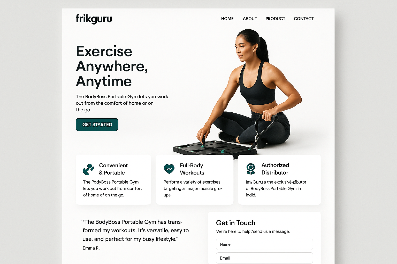 Fitness should be part of our daily routine. It’s the activity that makes the best out us. Being active and fit in today’s world might be challenging. Going to gym and maintaining the membership for years and years requires lots of time of your daily routine. To solve this problem we have bring USA’s Most funded fitness startp “BodyBoss Portable Gym” in India. FrikGuru is India’s only authorised distributor for BodyBoss Portable Gym. BodyBoss is made in such a way that Every exercise you think of can do with a moment of time. And it’s portability is so smooth you can carry it whenever you go. This is the future of Real Potable Gym for Home and Personal use.