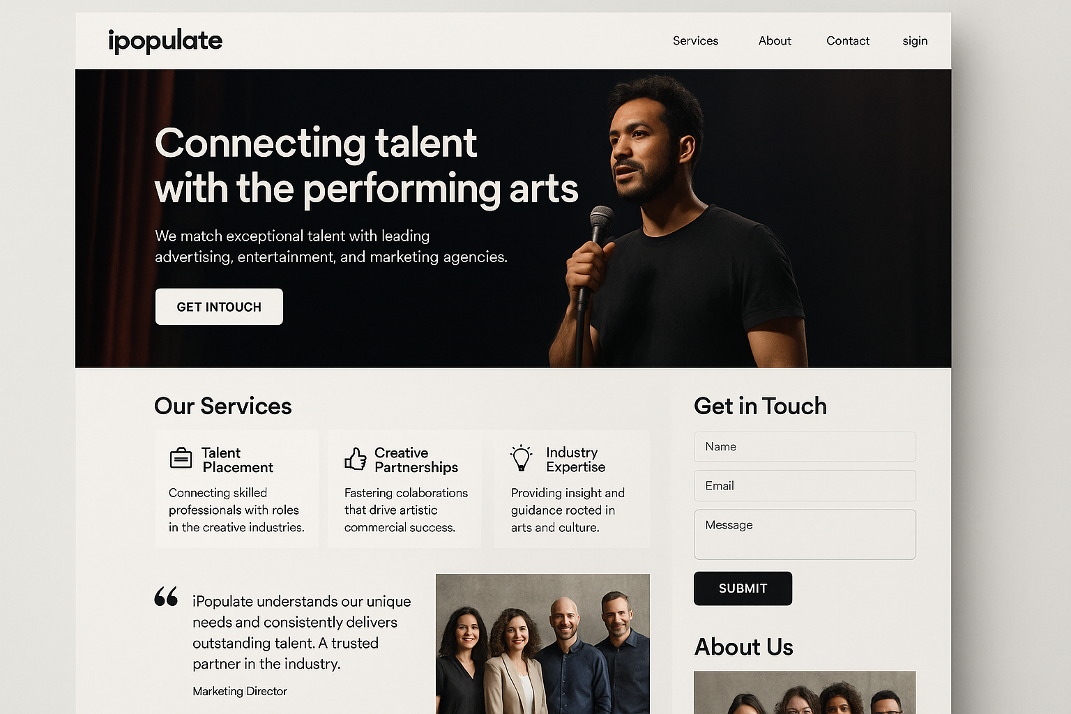 iPopulate.com – A trusted partner for connecting top talent with advertising, entertainment, and marketing agencies. With a credible and informed approach, iPopulate matches candidates to agencies based on true cultural fit, helping agencies find the perfect blend of skills and creativity for each role. Known for their candid and honest guidance, iPopulate supports professionals in finding their ideal career paths. This domain is perfect for a talent placement or recruitment agency focused on modern advertising and creative industries