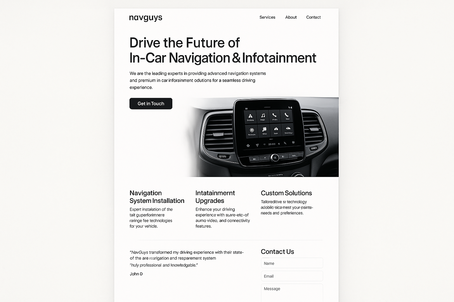 Introducing NavGuys.com, the perfect digital real estate for innovators poised to steer the future of in-car navigation and infotainment systems. This domain stands out as a memorable and brandable asset, immediately communicating expertise and focus within the automotive technology industry. With the increasing demand for advanced navigator systems in modern vehicles, NavGuys.com positions itself as a trusted online destination for cutting-edge products, such as Harmon Kardon's premium infotainment systems and similar high-end offerings.